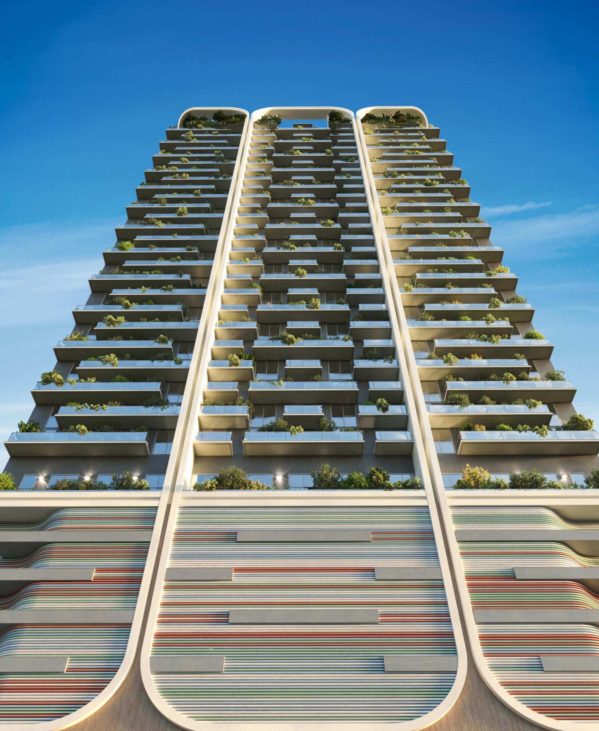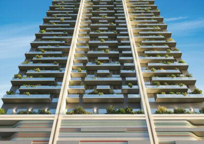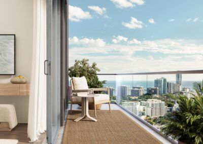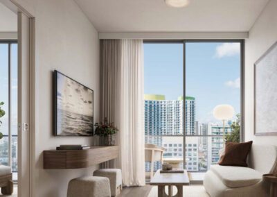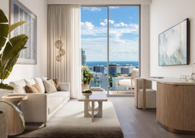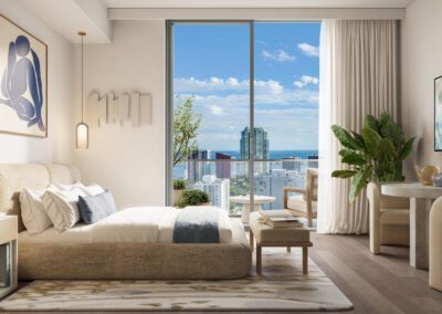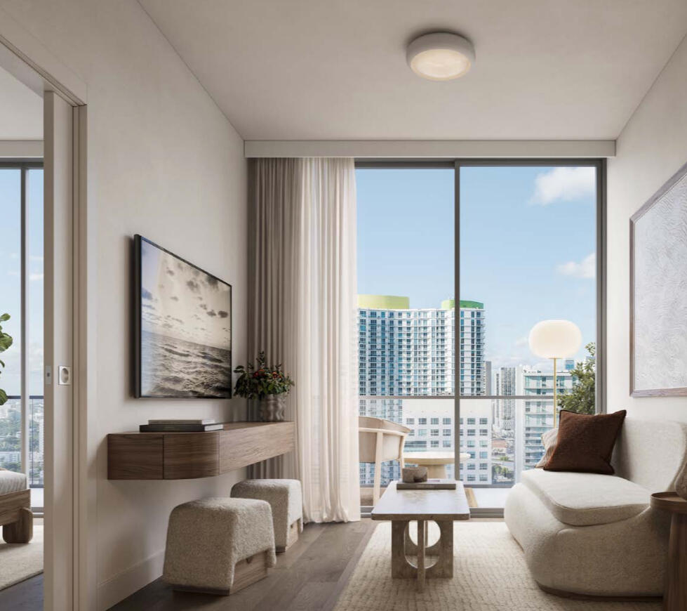 The residences at House of Wellness are a reflection of serenity and contemporary design. With 9’4″ ceilings and abundant natural light, these open-concept spaces invite relaxation. Premium finishes include composite flooring, two-tone cabinetry with terrazzo resin countertops, and high-end appliances. Each home features polished concrete balconies that extend living outdoors, offering spectacular views of Brickell and the bay, while advanced water and air purification systems ensure a healthier environment in every corner.