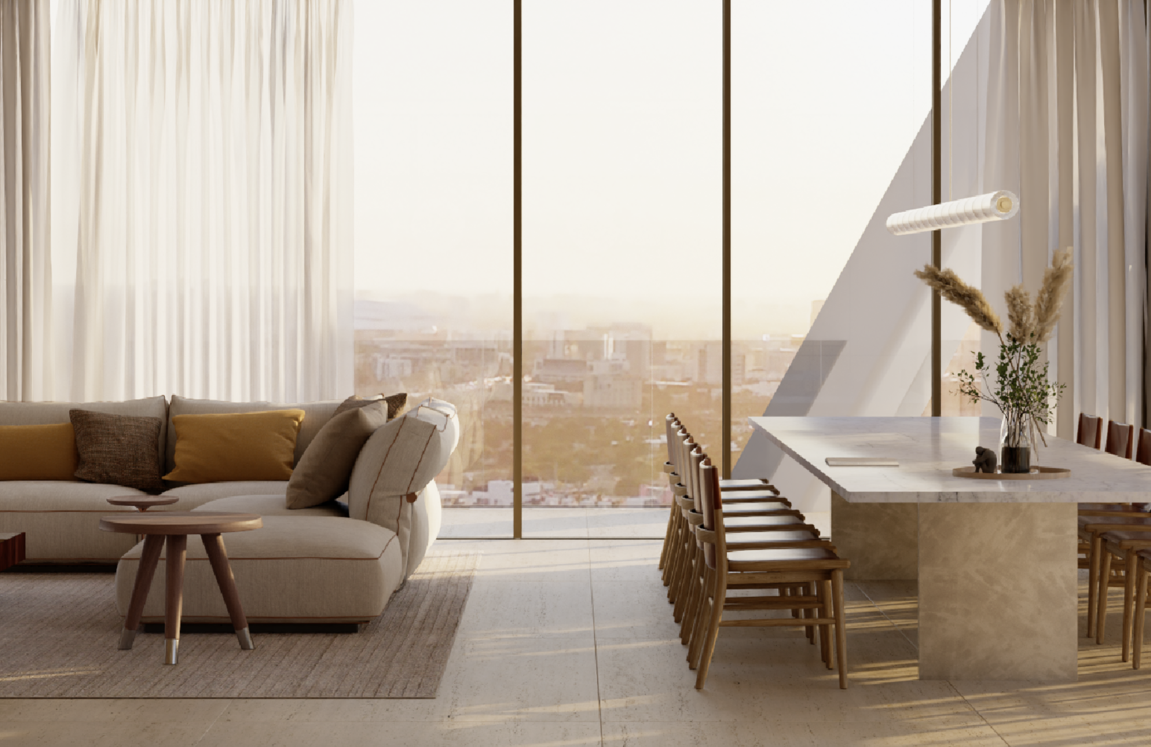 El edificio HQ Residences se distingue por su diseño arquitectónico innovador y sus acabados de alta gama. Con 229 unidades residenciales, cada apartamento está cuidadosamente planificado para maximizar la luz natural y las vistas panorámicas. Las residencias ofrecen configuraciones de 1 a 3 habitaciones, con cocinas modernas, balcones privados y materiales de primera calidad. La torre cuenta con un piso completo dedicado al bienestar, diseñado por Kane Sarhan, fundador de The Well, lo que refuerza su enfoque en la salud y el equilibrio. Además, los dos últimos pisos están destinados a amenidades exclusivas, sumando más de 1.480 metros cuadrados de espacios sociales y recreativos.
