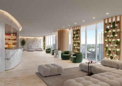 Con más de 80 000 ft² dedicados al bienestar y la sociabilidad, Okan Tower integra un spa de servicio completo con salas de tratamiento: